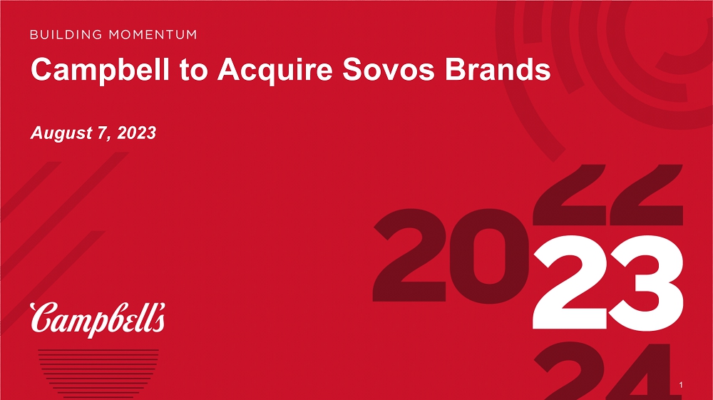 This press release does not constitute an offer to buy or sell or the solicitation of an offer to buy or sell any securities or a solicitation of any vote or approval. This press release relates to a proposed acquisition of Sovos Brands, Inc. (”Sovos Brands”) by Campbell Soup Company (“Campbell”). In connection with this transaction, Sovos Brands will file relevant materials with the Securities and Exchange Commission (the “SEC”). INVESTORS AND SECURITY HOLDERS OF SOVOS BRANDS ARE URGED TO READ THE PROXY STATEMENT AND OTHER DOCUMENTS THAT MAY BE FILED WITH THE SEC CAREFULLY AND IN THEIR ENTIRETY IF AND WHEN THEY BECOME AVAILABLE BECAUSE THEY WILL CONTAIN IMPORTANT INFORMATION. Any definitive proxy statement(s) (when available) will be mailed to stockholders of Sovos Brands. Investors and security holders will be able to obtain free copies of these documents (when available) and other documents filed with the SEC by Sovos Brands through the website maintained by the SEC at http://www.sec.gov. Copies of the documents filed with the SEC by Sovos Brands will be available free of charge on the Sovos Brands’ website at https://sovosbrands.com or by contacting Sovos Brands by email at IR@sovosbrands.com or by mail at 168 Centennial Parkway, Suite 200, Louisville, CO 80027.