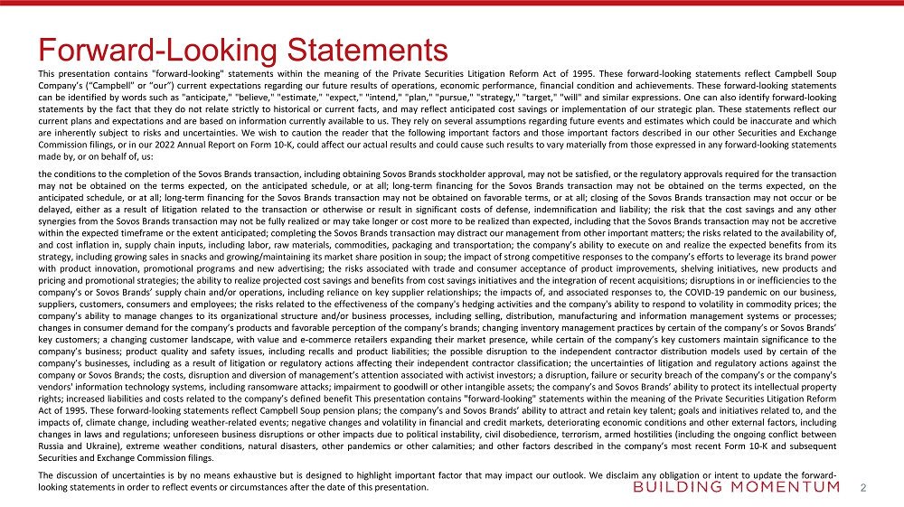 The discussion of uncertainties is by no means exhaustive but is designed to highlight important factors that may impact the outlook of Campbell and Sovos Brands. Campbell and Sovos