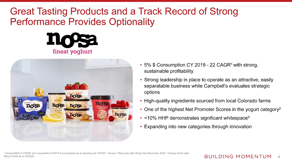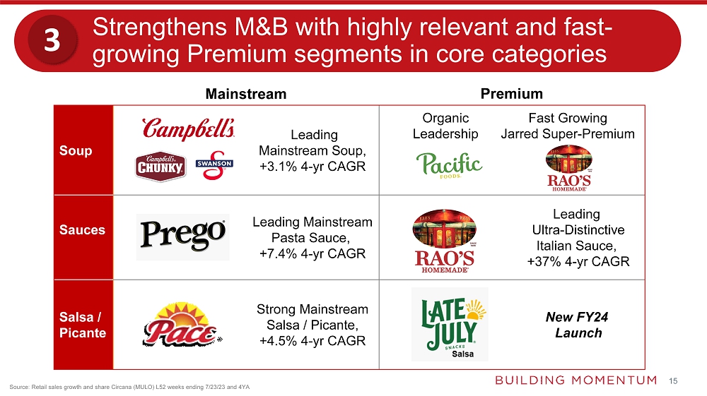 | o | Solidifies role of Meals & Beverages as a sustainable and dependable contributor to the enterprise, by complementing a stable, core portfolio in mainstream product categories with a fast-growing differentiated, premium segment |