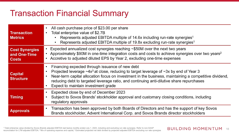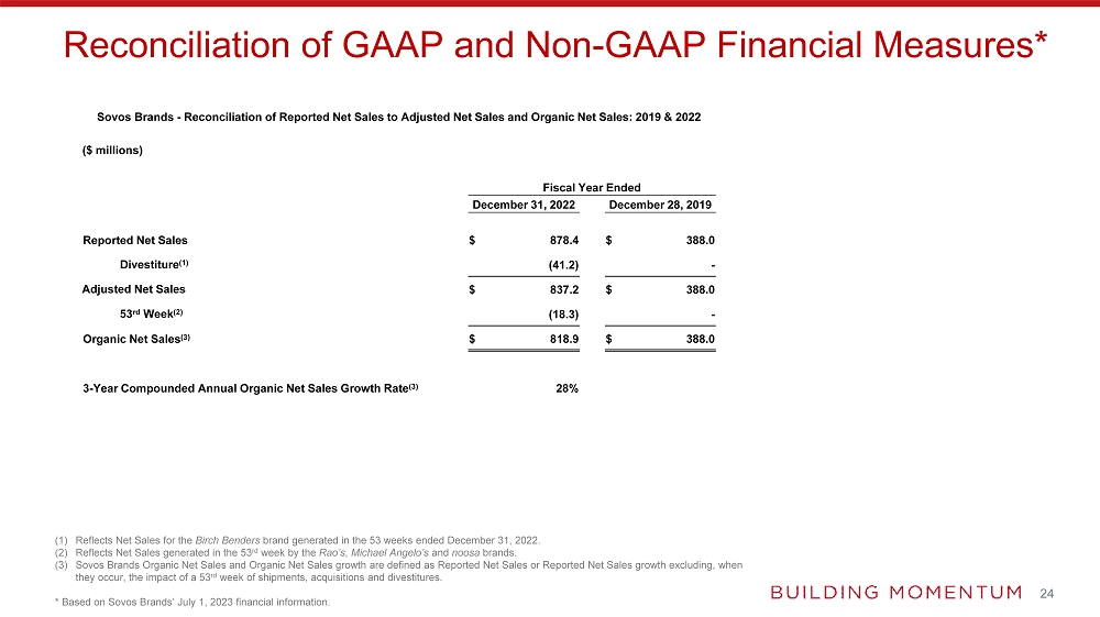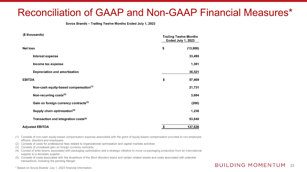 Sovos Brands – Trailing Twelve Months Ended July 1, 2023 |