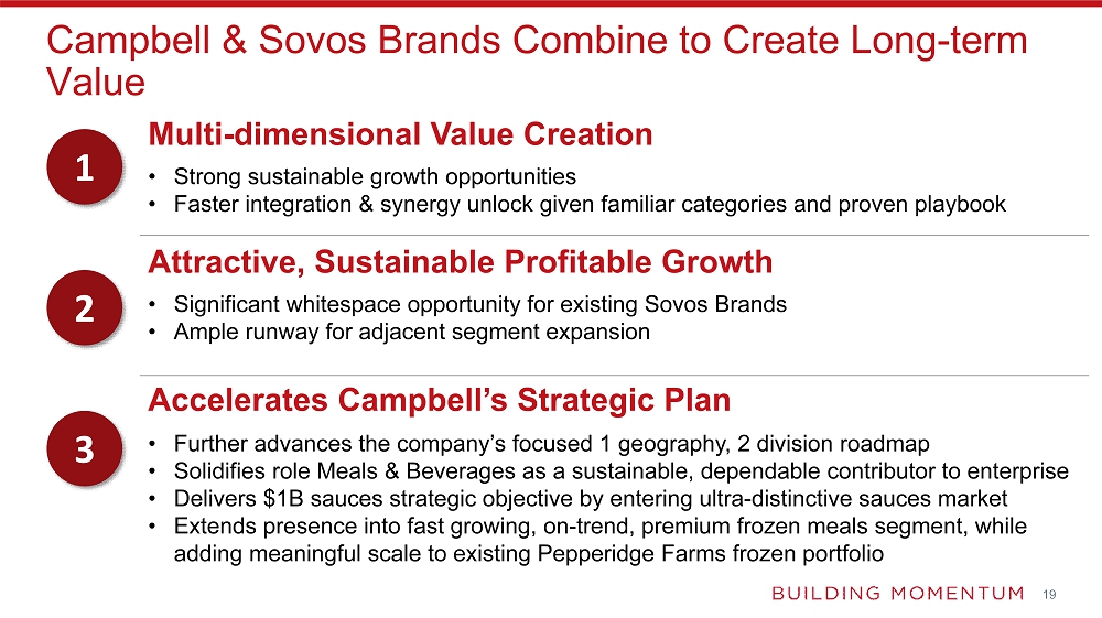 | o | Delivers Campbell’s $1 billion sauces strategic objective by filling in critical white space in the growing ultra-distinctive Italian sauce category, a segment where Campbell’s does not currently compete |