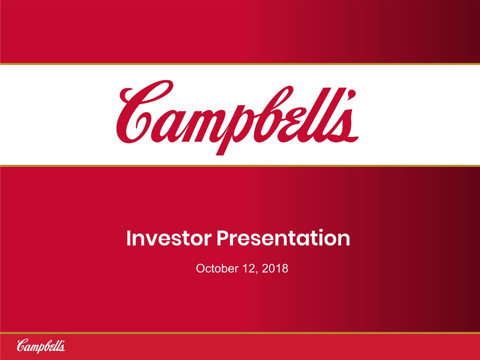 CAMDEN, N.J., Oct. 12, 2018—Campbell Soup Company (NYSE: CPB) announced today it has filed an investor presentation with the U.S. Securities and Exchange Commission in connection with its 2018 Annual Meeting of Shareholders, scheduled for Nov. 29, 2018.