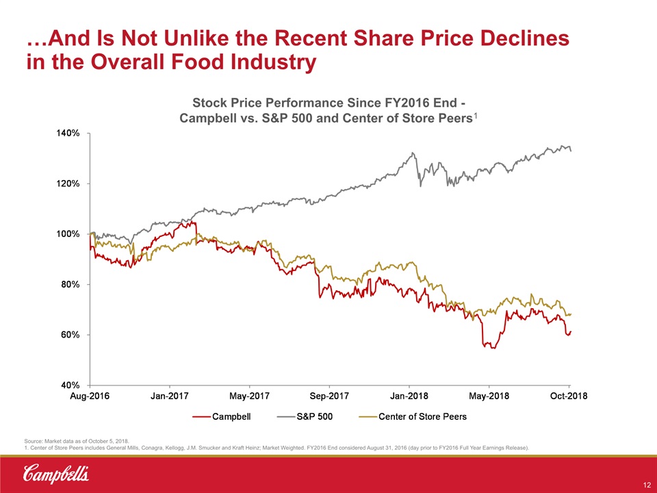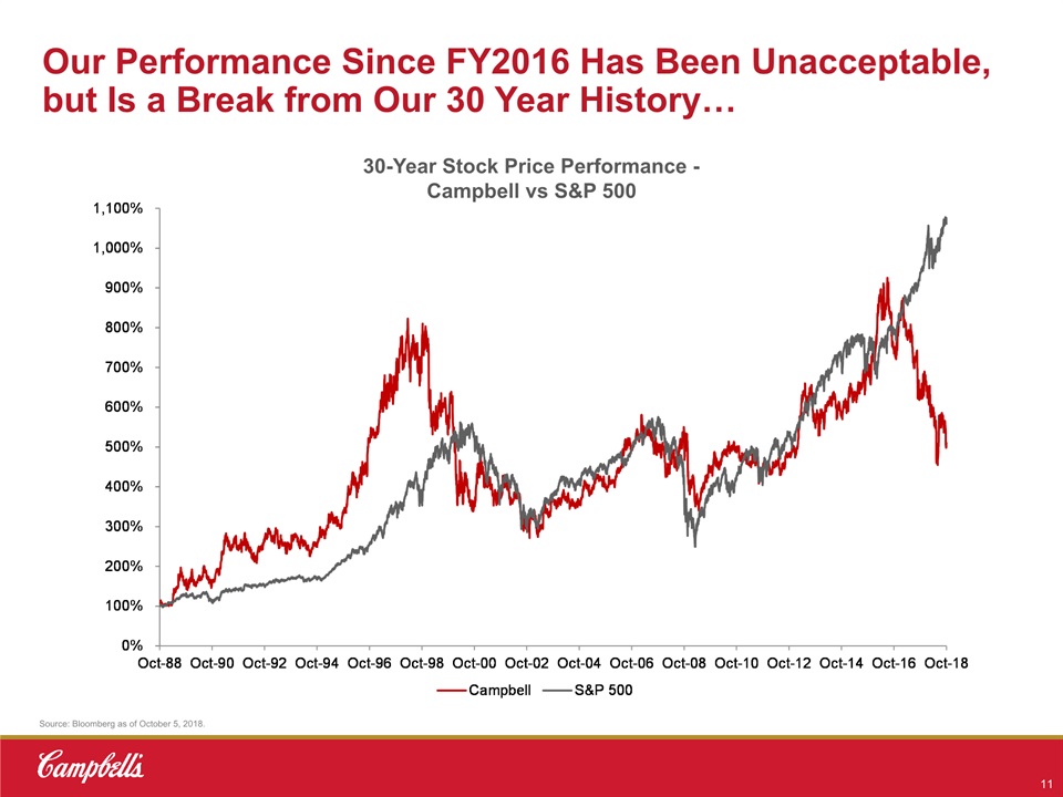 11 30-Year Stock Price Performance - Campbell vs S&P 500 Our Performance Since FY2016 Has Been Unacceptable,but Is a Break from Our 30 Year History… Source: Bloomberg as of October 5, 2018.