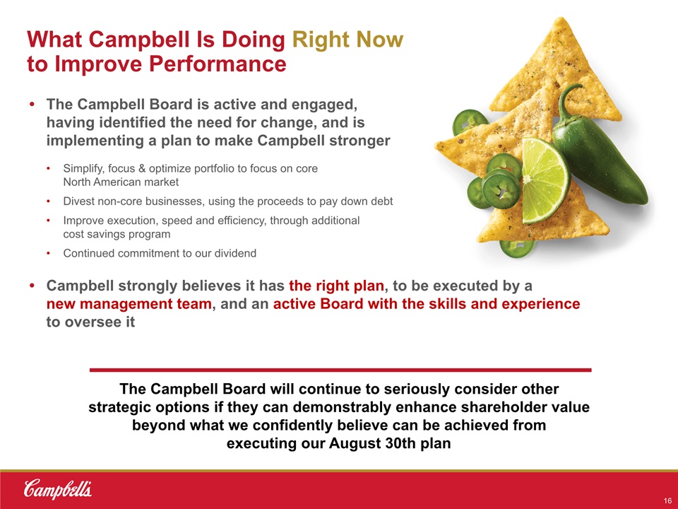 15 Our Solution:The Campbell Board’s Plan to Revitalize a Great Company