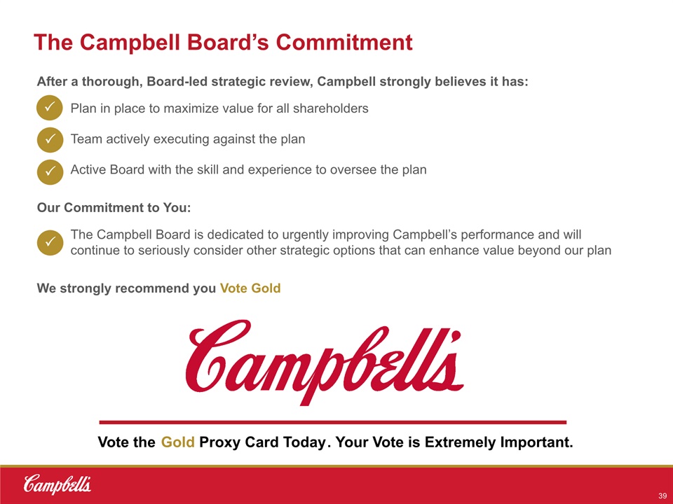 Our Commitment:The Campbell Board’s Full Commitment to Maximizing Shareholder Value 38