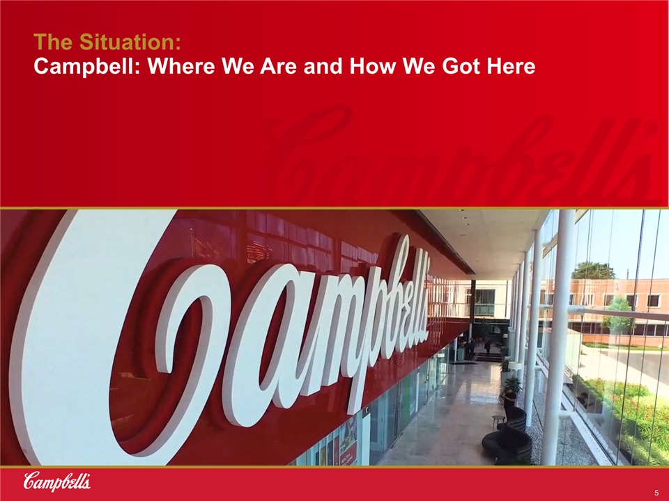4 Overview Campbell: Where We Areand How We Got Here The Campbell Board’s Plan to Revitalize a Great Company Third Point’s Empty Agenda The Situation OurSolution TheRisk The Campbell Board Strongly Believes Its Strategic Plan to Improve the Focus and Financial Performance of the Company Represents the Best Path Forward to Maximize Shareholder Value